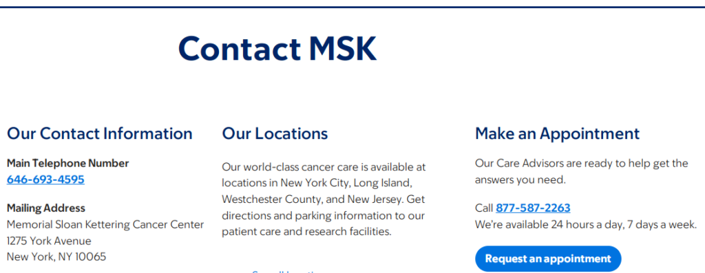 MSK has contact information to facilitate communication between its patients and providers, which leads to better patient outcomes. The best contact center in healthcare has become necessary for healthcare facilities to maintain relationships with their patients.